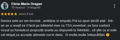 Ca mamă, am fost încântată de experiența pe care fiica mea a avut-o cu acest pedagog. De la primele ședințe, am văzut cum reușește să creeze o conexiune autentică cu ea, lucru care a făcut-o să se simtă în largul ei și să aștepte cu nerăbdare fiecare întâlnire. Pedagogul a fost extrem de atent la nevoile ei, personalizând fiecare sesiune pentru a-i susține ritmul propriu de învățare.