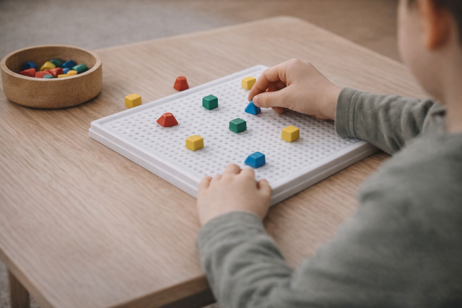Limbajul se dezvoltă prin experiență. Mișcările fine, atenția și coordonarea susțin exprimarea clară.